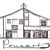 Na parte de trás há um jardim e uma área de estacionamento na frente.